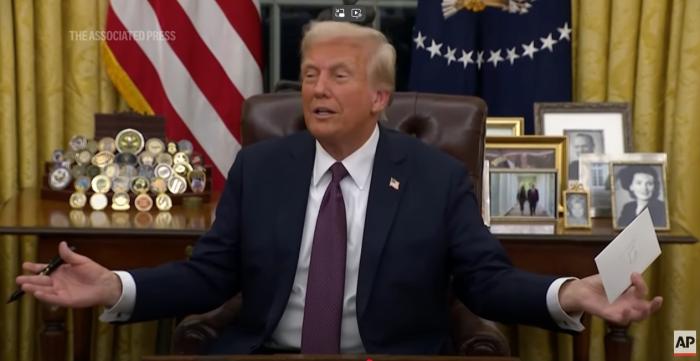 “上面写着,‘致第47任’。”特朗普说。“这是非常好的一封信……基本上就是一封鼓舞人心的信。享受它。好好干。非常重要的是,这份工作有多重要。”